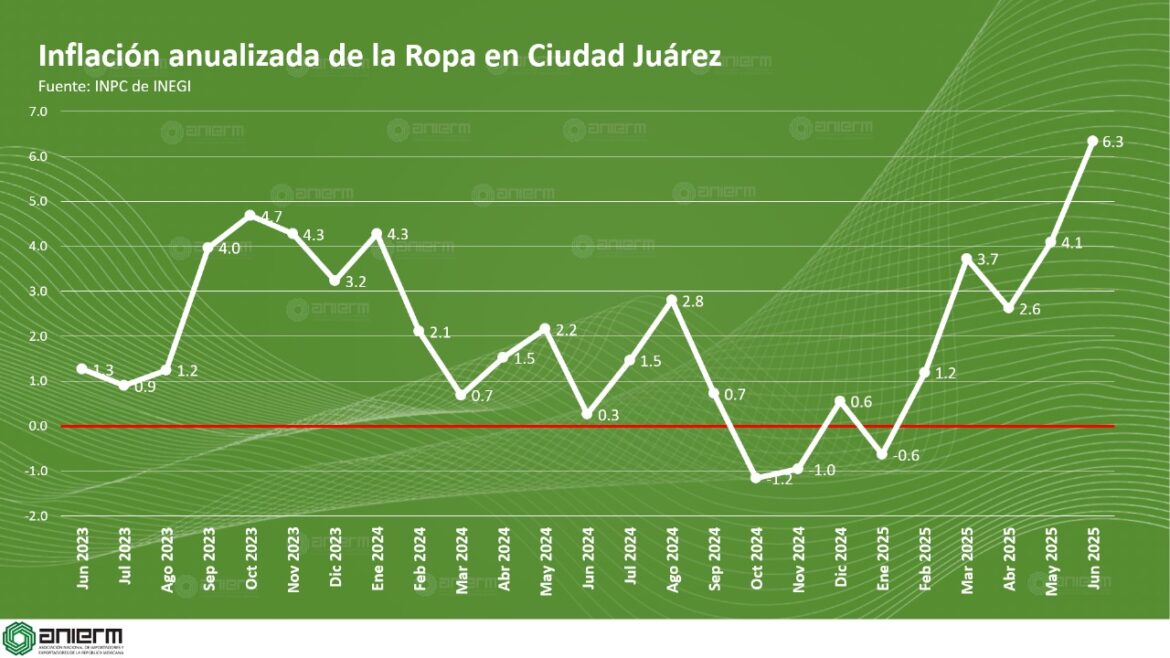 El precio de la ropa en Ciudad Juárez ha registrado un aumento inusual en lo que va del año, como consecuencia directa del arancel del 35% que México impuso a textiles provenientes de China desde diciembre de 2024. De acuerdo con el Instituto Nacional de Estadística y Geografía (INEGI), en junio la ropa presentó una inflación anual del 6.3%, cifra que contrasta notablemente con el 0.3% registrado en el mismo mes del año pasado. Este aumento representa la inflación más alta en prendas desde 2018.