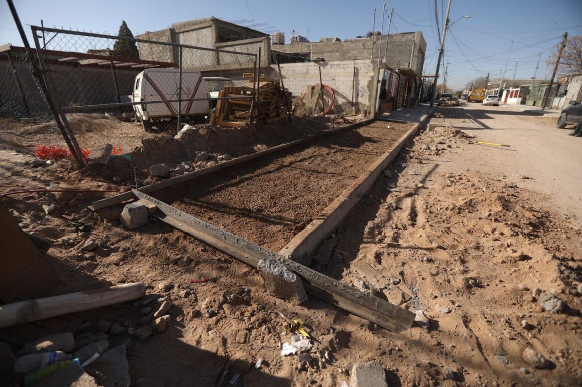 En la colonia Manuel J. Clouthier, la Dirección General de Obras Públicas avanza en los trabajos de construcción de la calle Francisco López García, en el tramo correspondiente de las calles Fray Tomas de Gallardo a Fray Antonio de Arteaga, presentando actualmente un avance del 50 por ciento en la obra.