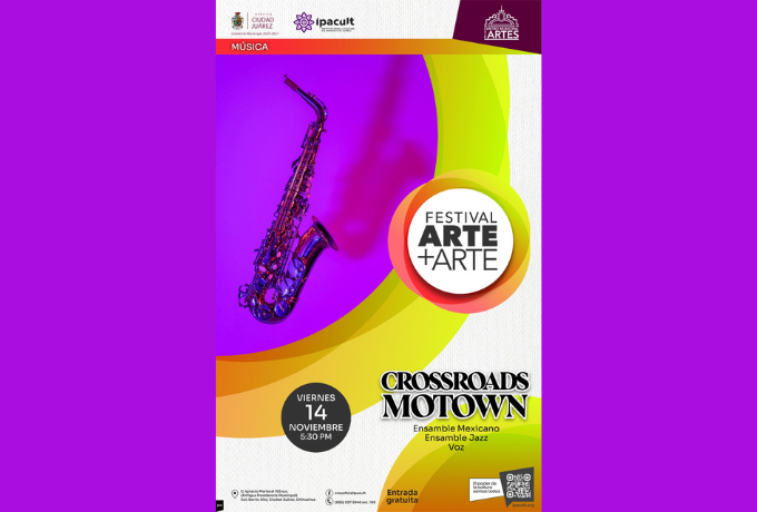 El Instituto para la Cultura del Municipio de Juárez (IPACULT) invita a la comunidad juarense al gran cierre del Festival Arte+Arte, que se celebrará este viernes 14 de noviembre, a partir de las 5:30 de la tarde, en el foro Mtra. Claudia Gutiérrez Chaparro del Centro Municipal de las Artes (CMA), ubicado en la antigua presidencia municipal, detrás de la Catedral de Nuestra Señora de Guadalupe. La jornada abrirá con la presentación del ensamble mexicano y de voz “Crossroad Motown”, interpretado por los estudiantes de música Pedro Espinoza, Nicolás Tristán y Esmeralda Villalobos, acompañados por los profesores Nicolás Rodríguez y Jaime Villarreal.