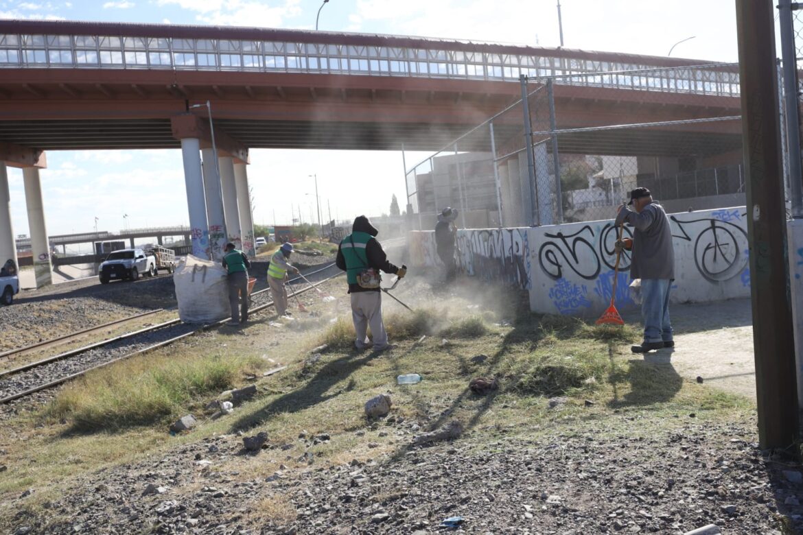 Las cuadrillas comenzaron las labores desde la Plaza de la Mexicanidad, punto de salida y meta del recorrido, donde realizan limpieza general, retiro de hierba, tiliches, llantas y montones de tierra dispuestos de manera indebida. En los trabajos utilizan también un mini cargador para remover material acumulado.