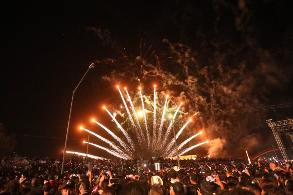 Posterior al Grito de Independencia que encabezó el Presidente Municipal, Cruz Pérez Cuéllar, las miles de familias asistentes disfrutaron de un espectáculo de drones y pirotecnia.