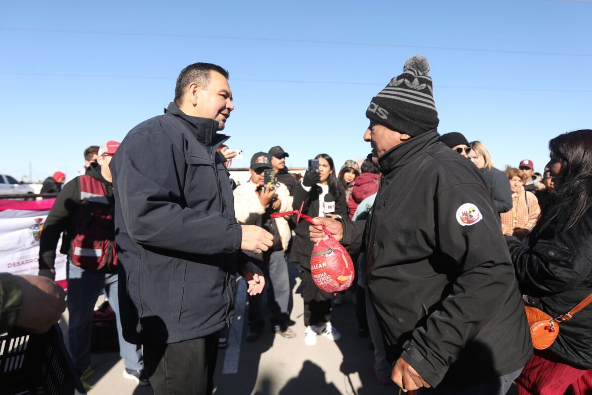 Por ello, el Presidente Municipal, Cruz Pérez Cuéllar llevó a cabo esta mañana la entrega de piernas de puerco a las y los vecinos de las colonias aledañas al Estadio 8 de Diciembre.
