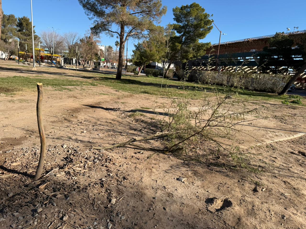El titular de la dependencia, Daniel Zamarrón Saldaña, informó que durante recorridos de supervisión, las cuadrillas detectaron un árbol severamente dañado en el parque Borunda, el cual presuntamente fue arrancado de manera intencional, ya que presenta señales claras de haber sido quebrado.