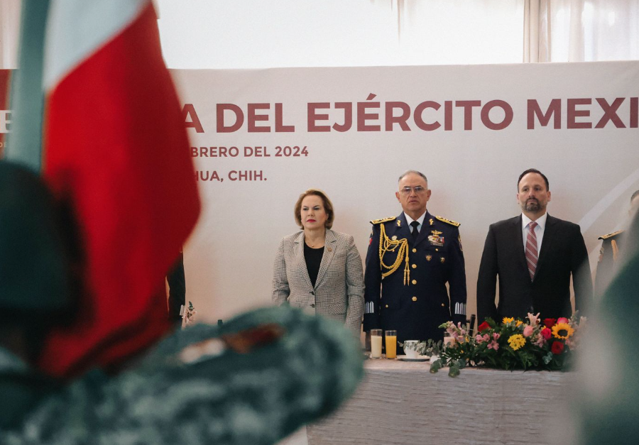 Chihuahua, Chihuahua a 19 de febrero de 2024.- El Congreso del Estado de Chihuahua ha trabajado de manera conjunta con el Ejército Mexicano en temas de seguridad y también en el reconocimiento del “Bicentenario de la fundación del Heroico Colegio Militar”, señaló Adriana Terrazas Porras en el marco del 111 aniversario del Ejército Mexicano realizado en la Quinta Zona Militar.