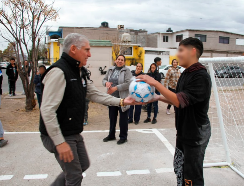 Chihuahua, Chih.- El diputado Mario Rodríguez del Partido Acción Nacional (PAN), contribuye al bienestar de la comunidad con la construcción e inauguración de una cancha de fútbol. Después de una visita el pasado 21 de diciembre a las y los vecinos de colonia Villa Nueva para celebrar una posada navideña, en la que le expresaron la necesidad de construir una cancha de fútbol para beneficio de las y los niños, ante esto el diputado se comprometió a hacer la cancha en el parque de la colonia y a un mes de dicho compromiso, volvió a Villa Nueva para inaugurar la cancha y donar balones de fútbol.
