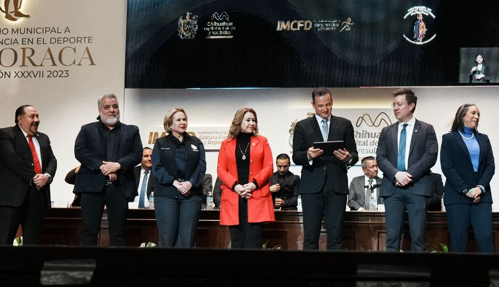 La legisladora reconoció que los cronistas son parte esencial en la promoción del deporte, lo anterior por el reconocimiento a Gilberto Carmona Lucero por 40 años de trayectoria y a Federico “El Champion” Flores por acompañar a los Dorados de Chihuahua desde 1964 hasta el año 2002 como parte de su porra.