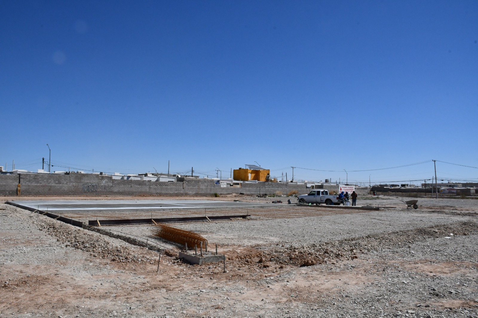 La Dirección General de Obras Públicas de Juárez construye un nuevo espacio deportivo en la colonia Praderas del Sol, al suroriente de la ciudad, como parte del programa de Presupuesto Participativo. La obra incluye un domo, piso de concreto y pasto sintético, aparatos de ejercicio, y andadores de concreto y arcilla que permitirán caminata y actividades recreativas, con una inversión de 6 millones 263 mil 689 pesos.