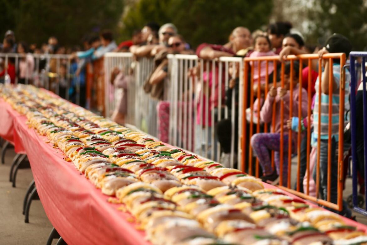 Cientos de familias juarenses acudieron esta tarde al parque DIF, situado en la avenida Heroico Colegio Militar, para partir la rosca gigante de 300 metros por el Día de los Reyes Magos.