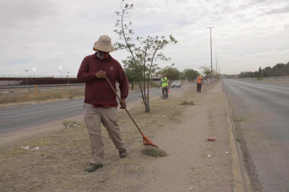 “Estuvieron haciendo el corte de hierba, retiro de basura, barrido de banquetas y también, desde luego, trabajos que sirven para preparar el área del Chamizal para este próximo fin de semana de Pascua”, destacó el director de Limpia, Gibran Solís Kanahan.