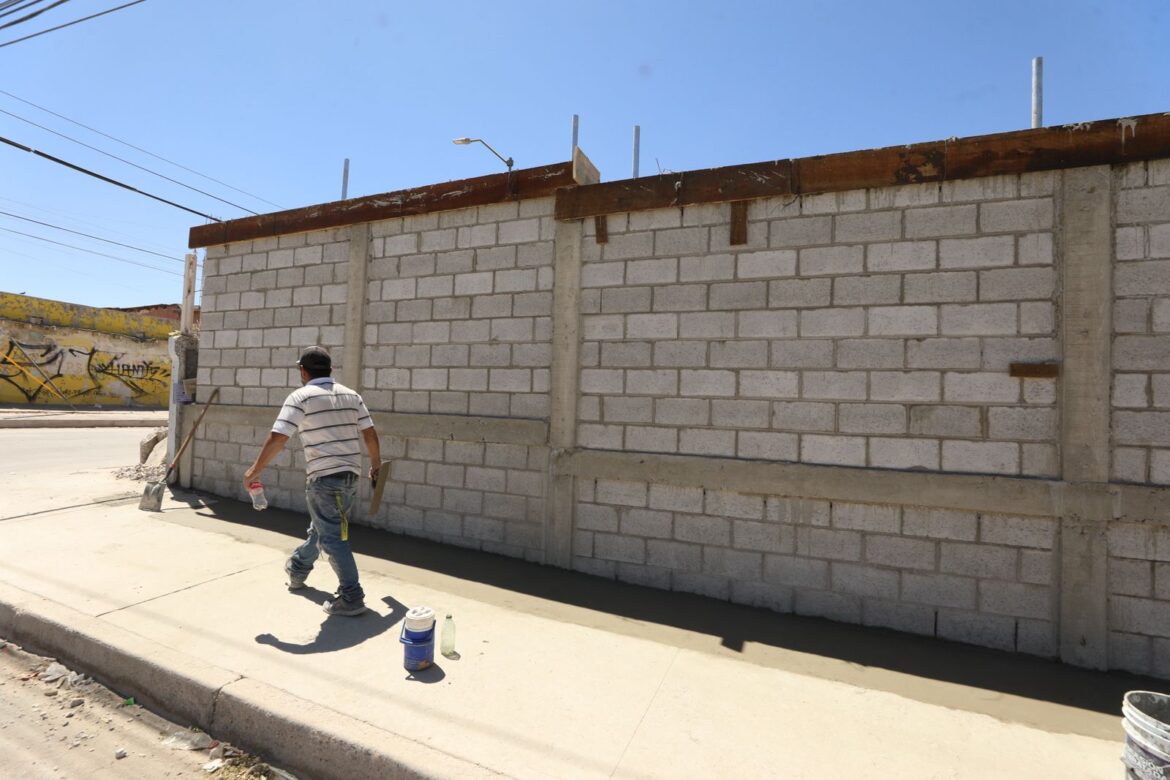 La Dirección General de Obras Públicas trabaja en la rehabilitación de una barda perimetral de la Escuela Primaria Insurgentes, ubicada entre la avenida 16 de Septiembre y la calle Miguel Hidalgo en la colonia Insurgentes.
