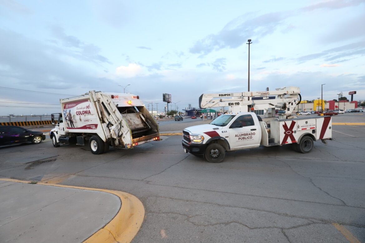 Como parte del programa Cruzada Nocturna por Juárez, la Dirección General de Servicios Públicos llevó a cabo una jornada integral de rehabilitación, mantenimiento y limpieza en el tramo del bulevar Zaragoza comprendido desde la avenida Tecnológico y hasta Las Torres, abarcando una distancia aproximada de 4 kilómetros.