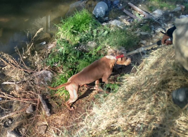 Portada » Rescatan a perro atrapado en la Acequia Madre en Bellavista
