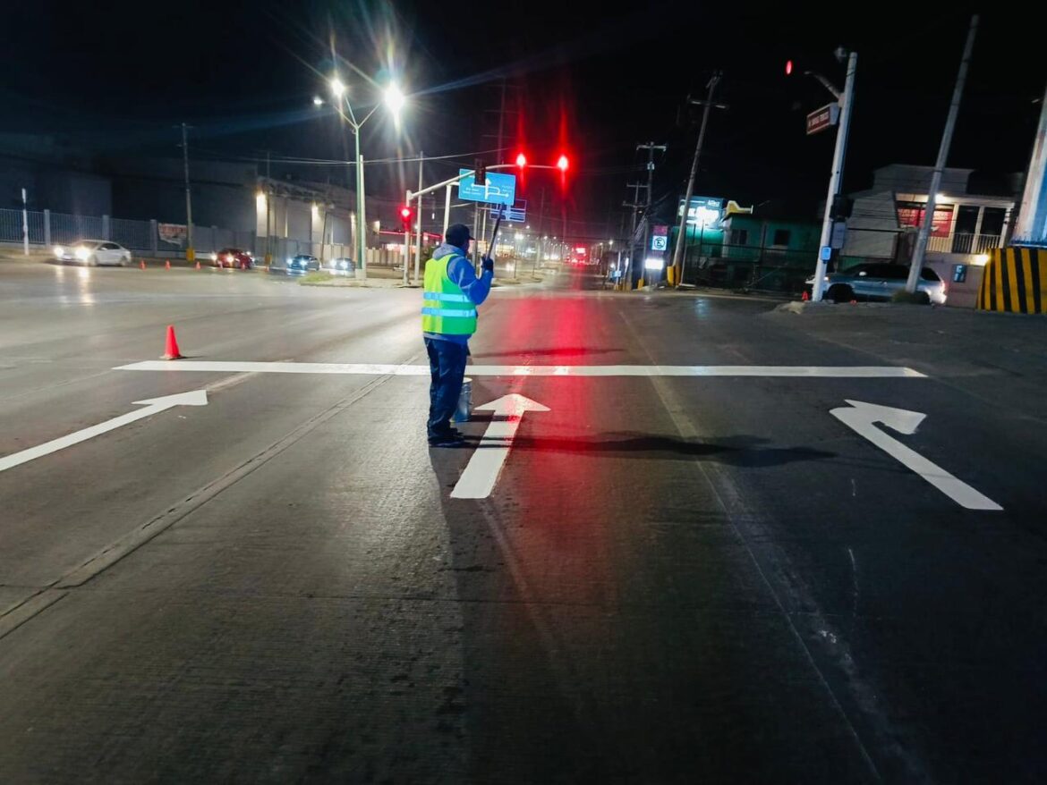 La Coordinación General de Seguridad Vial, a través del área de Control de Tráfico, llevó a cabo trabajos de mantenimiento y aplicación de pintura en señalamientos viales del fraccionamiento Parajes del Sol, con el objetivo de mejorar la visibilidad, reforzar la seguridad de peatones y conductores y fomentar una circulación más ordenada.