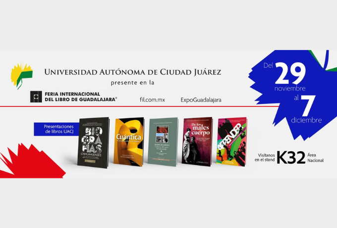 La UACJ presentará diversas novedades editoriales que abarcan ciencia, historia, migración y estudios sociales. Entre ellas se encuentran Cuántica. El sinuoso sendero a la realidad de Gerardo Herrera Corral y el artista Sebastián (30 de noviembre, salón 6); Biografías chihuahuenses 1824–1921 de Juan Carlos Sánchez Montiel (30 de noviembre, Salón G); Tiempo de espera. Crónicas del cruce documentado de Víctor Alejandro Espinoza Valle (30 de noviembre, stand Altexto); De los males del cuerpo de Abraham Sifuentes Mendoza (4 de diciembre, salón F del área Internacional); y Aprender. Una mirada desde las relaciones, en coedición con el ITESO, de Brenda Irán Ordóñez Quezada (7 de diciembre, stand H31).
