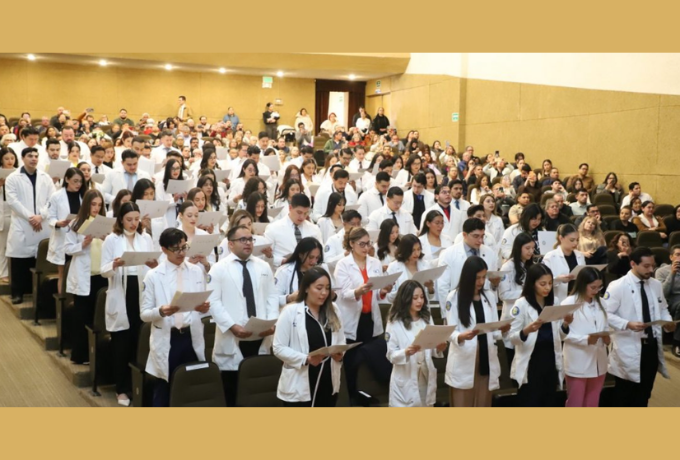 Durante el acto académico, 59 estudiantes fueron reconocidos por obtener promedios destacados entre 9.0 y 10, mientras que 17 recibieron distinción por su alto desempeño en el EGEL. Como parte del protocolo se realizaron Honores a la Bandera, el Himno Nacional y la toma del Juramento de Hipócrates y la Declaración de Ginebra. El egresado Emiliano Gómez Montañez, con el mejor promedio de la generación (9.64), dirigió un mensaje en el que destacó que la medicina exige carácter, ética, humanidad y resiliencia, recordando que los retos forjan a los profesionales y que hoy el sueño de portar la bata blanca se convierte en una responsabilidad real.