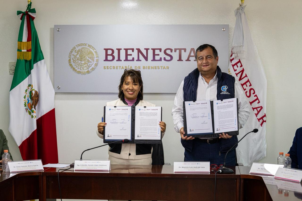 La Secretaría de Bienestar y el Colegio de Postgraduados (COLPOS) firmaron un convenio de colaboración para fortalecer los sistemas agroforestales y prácticas agroecológicas del programa Sembrando Vida en comunidades rurales del país. Este acuerdo busca mejorar la producción, organización y desarrollo económico de campesinas y campesinos mediante el acompañamiento técnico y la formación especializada.