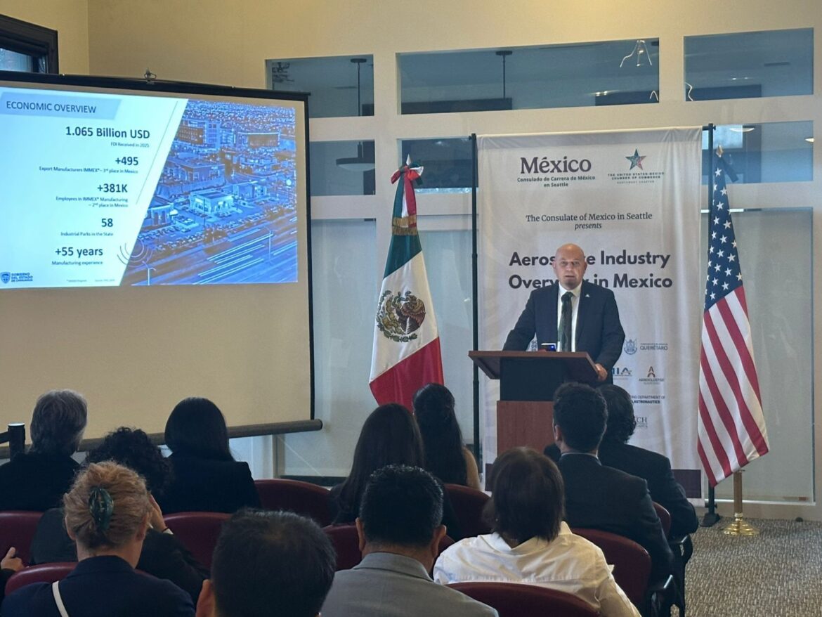 El Gobierno del Estado de Chihuahua, a través de la estrategia Invest in Chihuahua, participó en el Seminario de Inversión “Panorama de la Industria Aeroespacial en México”, realizado en el Consulado de México en Seattle, con el objetivo de generar vínculos estratégicos y promover nuevas oportunidades de negocio.
