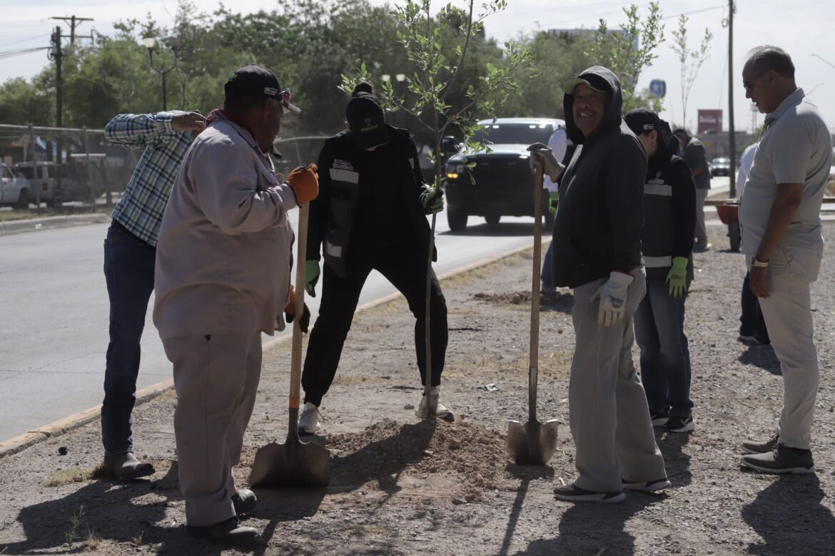 Como parte de las acciones para mejorar la imagen urbana de esta frontera, la Dirección de Parques y Jardines, en coordinación con el diputado federal Alejandro Pérez Cuéllar, dio seguimiento a las jornadas de reforestación en el camellón central de la avenida Ejército Nacional.