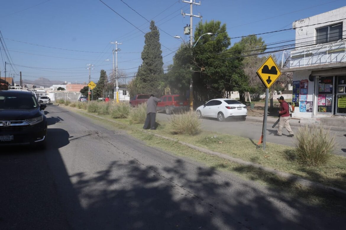 Personal de la Dirección de Parques y Jardines del Municipio llevó a cabo trabajos de mantenimiento general en el camellón central de la calle Rancho Malpaso, en el fraccionamiento Pradera Dorada.