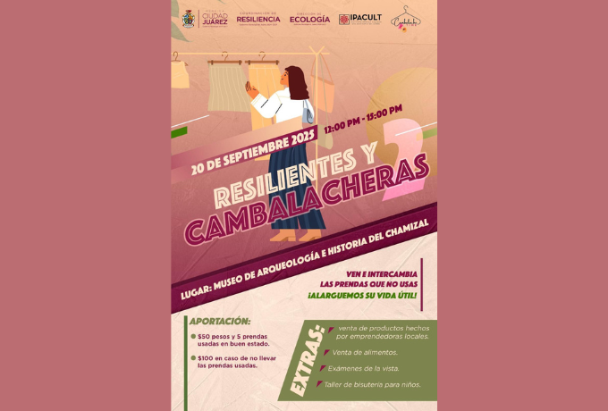 El Gobierno Municipal, a través de la Coordinación de Resiliencia, Dirección de Ecología y el Instituto para la Cultura del Municipio de Juárez (IPACULT), en colaboración con la agrupación Cambalache Time, prepara su segundo evento de ‘cambalache’ de ropa.