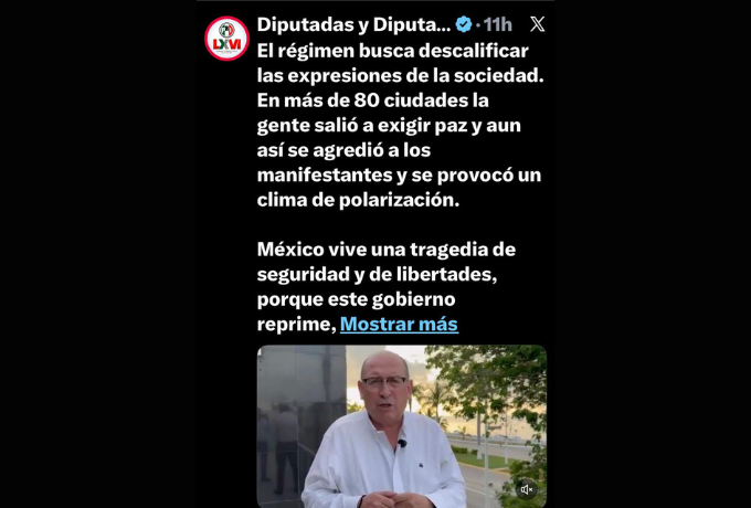El PRI señaló que mientras más de ochenta ciudades tuvieron manifestaciones pacíficas contra la violencia y la inseguridad, el Gobierno de la Ciudad de México optó por confrontar y criminalizar a quienes protestaban. La bancada criticó que el régimen, en lugar de escuchar la voz ciudadana, “siembra división, limita libertades y fabrica descalificaciones” hacia quienes cuestionan las fallas en seguridad, economía y gobernabilidad. Asimismo, condenaron que un gobierno que se autodenomina de izquierda recurra —dijeron— a prácticas autoritarias que profundizan el clima de polarización.