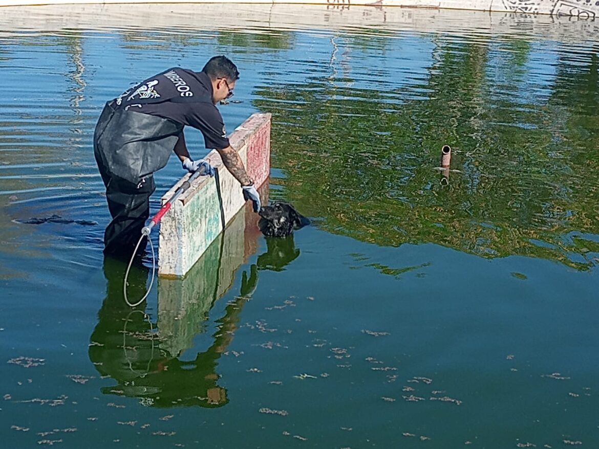 Elementos operativos de la Dirección General de Protección Civil rescataron a un perro que se encontraba atrapado en un pozo de absorción en las inmediaciones del Parque El Chamizal.