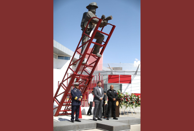 El acto se llevó a cabo en el Monumento al Bombero, en la Estación Central de la dependencia, donde el Alcalde estuvo acompañado por el comandante de Bomberos, Jorge Ignacio Fuentes y el director general de Protección Civil, Sergio Rodríguez.