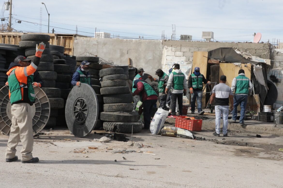 Como parte de los operativos de Reordenamiento Urbano, el Gobierno Municipal de Ciudad Juárez, a través de diversas dependencias, realizó el retiro de un asentamiento irregular que operaba como llantera, compra de metales y taller mecánico en un predio sin autorización. Francisco García, encargado de Inspección y Vigilancia de la Dirección de Ecología, informó que el propietario ignoró notificaciones previas y que el retiro se realizó siguiendo los protocolos de seguridad y ordenamiento urbano establecidos.